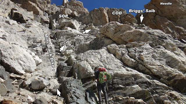 Features along the Grand Teton's Central Rib