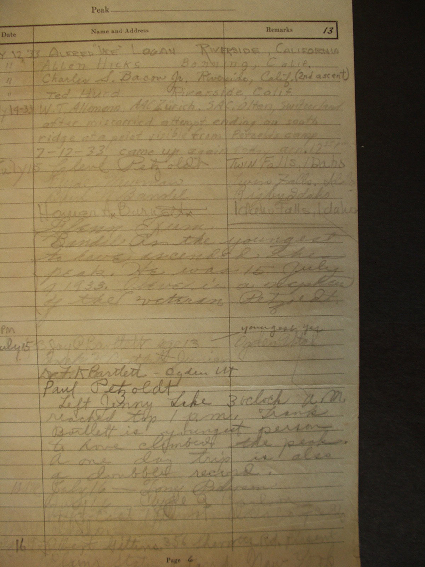 For historical reference, Holyoke & Hawkes started from the "Trail in Flats". Renny Jackson's guidebook says it was the Lupine Meadows trailhead. The Bonney guidebook says they started at Jenny Lake. Hawkes